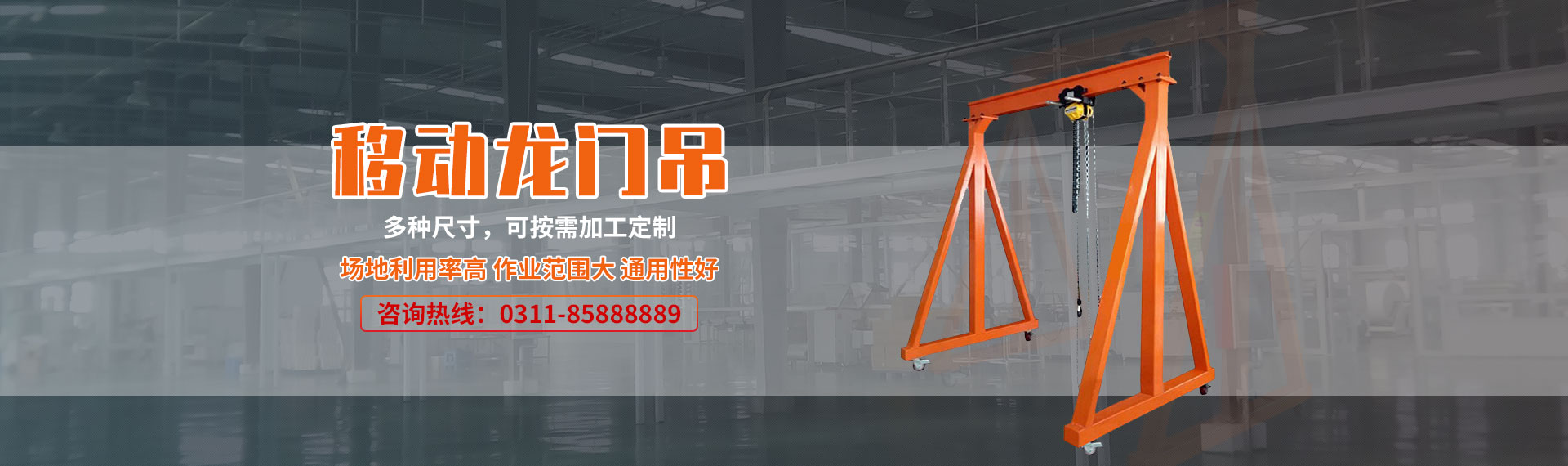 小型龍門吊架(簡易移動龍門起重機)廣泛應(yīng)用于港口、電力、鋼鐵、造船、礦山、鐵路、冶金、石油化工、汽車制造、大件運輸、海洋工程、基礎(chǔ)建設(shè)等重要行業(yè)以及基礎(chǔ)建設(shè)工程的機械設(shè)備。